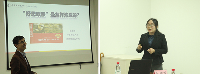 本次比賽分為開幕式、主題報(bào)告、教學(xué)展示、專家點(diǎn)評(píng)四個(gè)部分。比賽伊始,院長李林英介紹各位專家及比賽背景。接下來,謝玉進(jìn)以“‘好思政課’是怎樣煉成的”為主題,并結(jié)合實(shí)際案例講述“好的思政課”是磨、闖、研、改、美出來的;穆阿妮以“比賽促教,夯實(shí)‘青椒’的基本功”為主題,從樹立精品課意識(shí)、練就基本功、包裝等角度進(jìn)行講述。