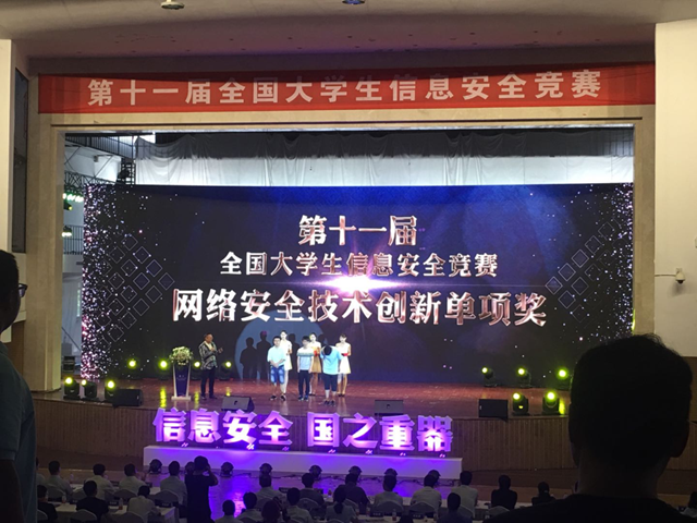 7月29日,第十一屆全國大學(xué)生信息安全競賽在武漢大學(xué)落下帷幕。由我校計算機(jī)學(xué)院副院長祝烈煌帶隊,張子劍、沈蒙、王安、徐暢、禮欣指導(dǎo)的參賽隊伍再次取得佳績,共獲“創(chuàng)新實踐能力賽”(以下簡稱“創(chuàng)新賽”)一等獎、網(wǎng)絡(luò)安全創(chuàng)新單項獎;“信息安全作品賽”(以下簡稱“作品賽”)二等獎3項、三等獎2項。