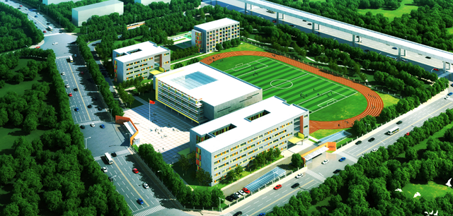 學校為“九年一貫制”,全面啟動后,每個年級4個班,共計36個班。學校目前建設有小學教學樓1棟,初中教學樓1棟,綜合樓1棟及學生教職工宿舍1棟。學校占地面積51124.81㎡,總建筑面積38466.3㎡。建設完成后,形成教育、德育、美育、體育等功能顯著的分區。