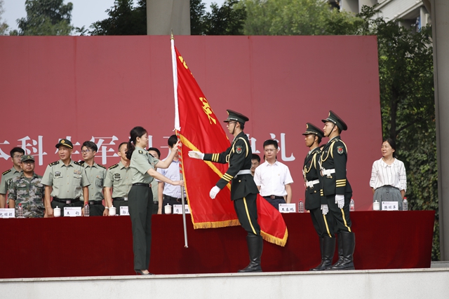 包麗穎代表學(xué)校黨委向航天工程大學(xué)全體承訓(xùn)教官表示感謝,并對(duì)參訓(xùn)學(xué)員提了三點(diǎn)希望:一是希望同學(xué)們能苦學(xué)軍事本領(lǐng),傳承報(bào)黨報(bào)國(guó)初心,讓美好青春洋溢家國(guó)夢(mèng)想;二是希望同學(xué)們磨煉意志品質(zhì),勇于面對(duì)困難與挑戰(zhàn),勇扛責(zé)任擔(dān)當(dāng);三是希望同學(xué)們養(yǎng)成良好作風(fēng),培養(yǎng)健康興趣愛好,在博采眾長(zhǎng)中健康快樂成長(zhǎng)。包麗穎強(qiáng)調(diào)全體學(xué)員要以軍訓(xùn)為契機(jī),立鴻鵠志、修精工學(xué)術(shù)、尋創(chuàng)新之道、擔(dān)復(fù)興大任,以拳拳愛國(guó)心、殷殷報(bào)國(guó)志,展現(xiàn)當(dāng)代大學(xué)生的青春風(fēng)采。隨后,包麗穎向軍訓(xùn)旅授旗,軍訓(xùn)旅旅長(zhǎng)張智強(qiáng)接旗。