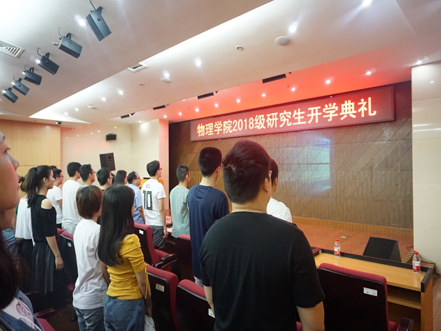 9月4日,物理學院2018級研究生開學典禮在圖書館報告廳舉行。物理學院黨委書記姜艷、執行院長姚裕貴、副院長蘇文勇、導師代表邢艷霞出席典禮,輔導員、教學干事以及2018級全體研究生參加典禮。開學典禮由學院副書記、副院長王晶晶主持。
