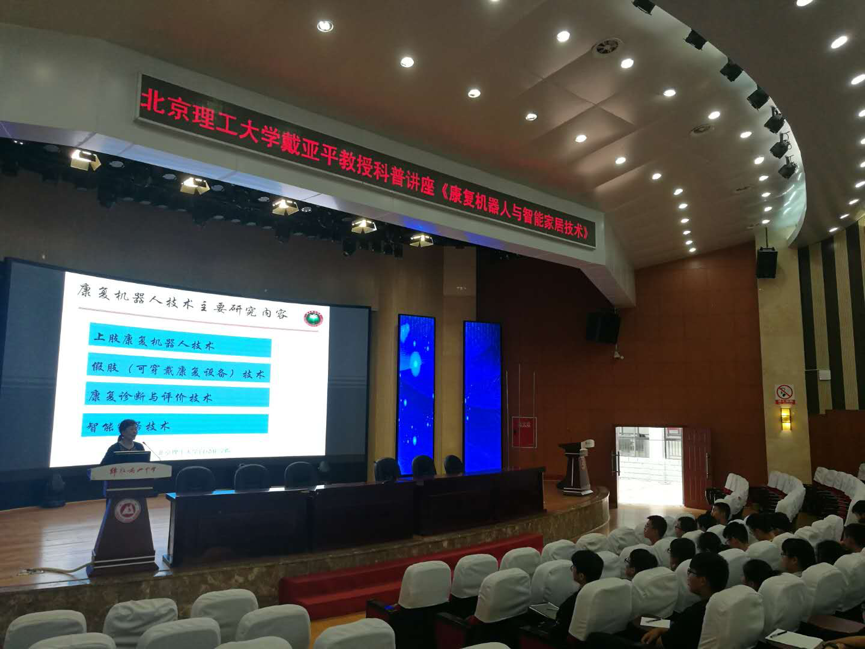 戴亞平圍繞康復機器人技術主要研究內容:上肢康復機器人技術、假肢(可穿戴康復設備)技術、康復診斷與評價技術、智能家居技術等方面內容深入淺出的為在場學子進行了介紹。
