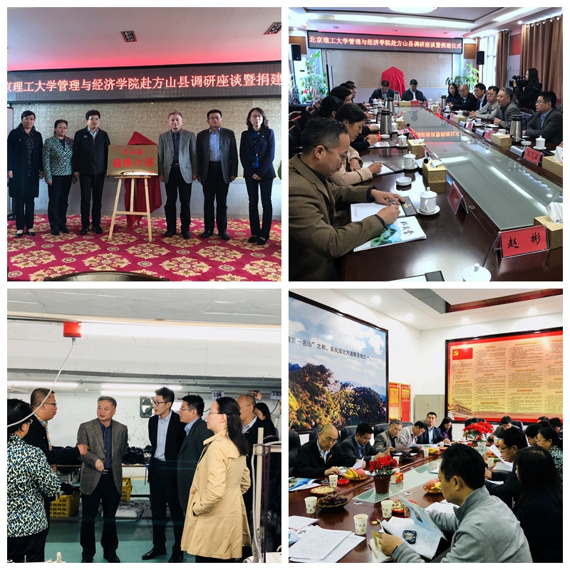 捐建儀式上,閆斌勝介紹了方山縣的基本情況,以及脫貧攻堅工作情況。管理學院院長魏一鳴表示,扶貧工作是管理與經濟學院師生的光榮使命,此次調研既是進一步貫徹落實習近平總書記關于精準扶貧重要指示精神之行,也是學院認真貫徹落實好北理工黨委‘在脫貧攻堅的偉大事業中展現北理工的力量’的重要指示和要求,同時還是班子成員的黨性、廉政教育之行。我們依托當地資源,發揮學院優勢,完善基礎設施建設,打造特色品牌,構建產業新業態,助力方山縣脫貧奔小康。方山縣副縣長張改玲、管理與經濟學院副院長關宏為“方山縣北理工健康小屋”揭牌。