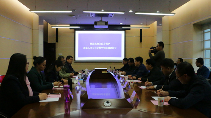 為深入貫徹落實習近平新時代中國特色社會主義思想和習近平扶貧開發戰略思想,貫徹落實學校黨委統一部署,打贏打好脫貧攻堅戰,助力方山縣脫貧任務。10月17日是國家第五個扶貧日,人文與社會科學學院領導班子與方山縣委、政府領導在良鄉校區深入座談。方山縣委副書記閆斌勝,政協主席劉月順,縣委常委、組織部長任志勇,政府副縣長高云林,政府副縣長王杰,脫貧攻堅領導小組副組長李葉出席座談會,人文與社會科學學院領導班子成員參加座談。