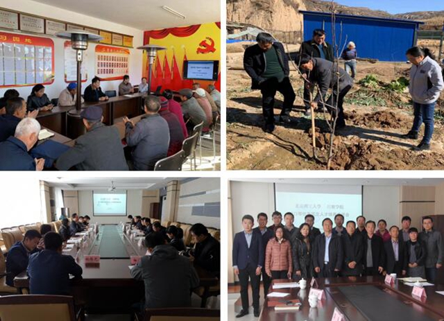 10月27日上午,考察團分成兩組,一組奔赴橋溝村開展果樹栽培技術講解和指導,另一組赴呂梁學院進行教育對接。農科院果樹專家趙德英研究員為果農詳細講解了果樹栽培技術,并到果園對遇到的實際問題進行耐心指導。王軍政帶隊赴呂梁學院與人事處、教務處、學位辦等部門領導進行了交流座談,雙方就呂梁學院青年教師到北理工在職攻讀博士、進修,組織北理工教師為呂梁學院教師開展學術講座、博士生為呂梁學院高年級本科生進行專業輔導,在北理工和相關高校宣傳呂梁學院吸引博士畢業生政策等達成了初步共識。