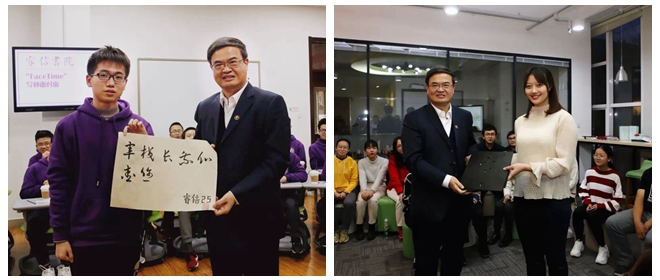 活動中,睿信書院、精工書院和明德書院的學生代表向張軍校長贈送了自己創作的作品。