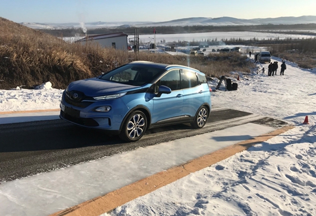 在本次測試中,參試車輛在-30℃以下的環境中,整車靜置40小時以上,在動力電池系統最低溫度達到-22℃的情況下,整車進行了冷啟動、全氣候動力電池低溫加熱、空調制熱、除霜及冰雪條件下的整車20%爬坡、加速、制動、能耗等系列試驗。