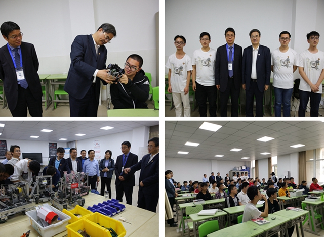 為加強(qiáng)學(xué)校和中學(xué)在人才培養(yǎng)方面的互動(dòng)合作,機(jī)電學(xué)院招生宣傳組邀請(qǐng)羅慶生教授在合肥一中開辦了為期兩天的“北理工——合肥一中機(jī)器人科普教育與創(chuàng)新體驗(yàn)培訓(xùn)班”。報(bào)告結(jié)束后,張軍看望了培訓(xùn)班的老師和學(xué)生,并與大家進(jìn)行了充分交流,并希望同學(xué)們抓住培訓(xùn)班學(xué)習(xí)的機(jī)會(huì),加強(qiáng)科技創(chuàng)新的實(shí)踐動(dòng)手能力。