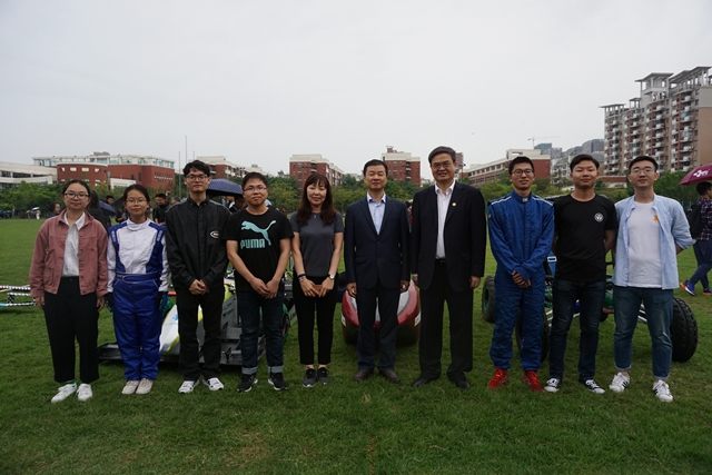 會后,機械與車輛學院、宇航學院師生在福州一中操場聯合展示學生科創團隊成果,并現場演示了部分車輛駕駛與操作。張軍向蔡輝森贈送了航模隊同學的科創作品,支持福州一中開展豐富多樣的學生創新活動。
