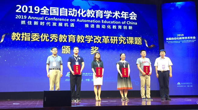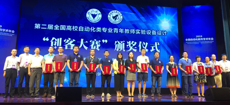 在閉幕式上,舉行了自動化類專業教學指導委員會優秀教育教學改革研究課題和第二屆全國高校自動化類專業青年教師實驗設備設計“創客大賽”頒獎儀式,自動化學院高琪“通過教與學學術(SoTL)研究開拓自動化類專業青年教師教學發展的有效途徑”教改課題獲得優秀教育教學改革研究課題,趙江波自制實驗教學設備“電機伺服系統控制與性能測試實驗臺”獲“創客大賽”銀獎。