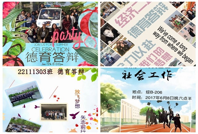 各班級學(xué)生在德育答辯時也暢所欲言,借助視頻、音樂、圖片等多種媒介進行形式多樣的德育答辯。機械與車輛學(xué)院03511301班選在十渡風(fēng)景區(qū)作為德育答辯的場地,以寧靜生活、積極進取、團結(jié)一致答辯主題,選取寧靜的農(nóng)家院、仙西山、竹筏場地為答辯地點,在歡快、放松的環(huán)境下進行了不一樣的答辯;信息與電子學(xué)院05111311班全體同學(xué)在中心花園順利舉行了德育答辯結(jié)題報告會,來自電子信息工程信號與圖像處理方向的31名同學(xué)暢談自己的大學(xué)生活,總結(jié)了四年來的成長經(jīng)歷;化學(xué)與化工學(xué)院10411301班德育答辯沒有采取以往每位同學(xué)單獨講ppt的形式,而是以“我的四年是一首歌”為主題,每人根據(jù)個人四年生活,推薦一首能代表此刻心情的歌曲,與大家在歌聲里分享四年心路歷程;外國語學(xué)院24131301班精心為每一位老師和學(xué)生制作了一套明信片,每一套里面都包含所有德語系教師和學(xué)生的照片,并且專門將各個老師和學(xué)生的照片放在了封面,作為德育答辯的紀念禮物,為每個即將離開北理的學(xué)子們留下珍貴的回憶。