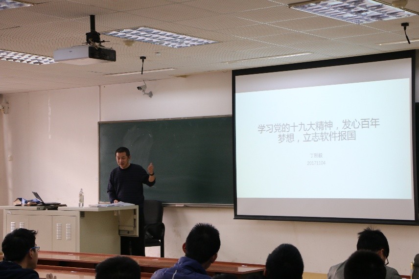 2017年11月4日下午1點在信息教學(xué)樓2006教室,軟件學(xué)院院長丁剛毅為軟件學(xué)院積極分子講解了主題為“學(xué)習(xí)黨的十九大精神,發(fā)心百年夢想,立志軟件報國”的黨課。丁院長首先向同學(xué)們強(qiáng)調(diào)了充分學(xué)習(xí)宣傳貫徹黨的十九大精神的重大意義,全面準(zhǔn)確講解了黨的十九大精神。然后丁院長從中國共產(chǎn)黨黨史、中國近代史、軟件工程革命史、人類史等角度,幫助積極分子通過深刻認(rèn)識歷史做到登高望遠(yuǎn)。丁院長講解了十九大報告中出現(xiàn)的57個“心”字,如初心、同心、信心、核心、關(guān)心、核心、心連心等,引導(dǎo)積極分子不忘申請入黨的初心。最后,丁院長要求積極分子要認(rèn)真學(xué)習(xí)、研讀十九大精神,通過政治學(xué)習(xí)提高自己的專注力,努力為專業(yè)發(fā)展、國家發(fā)展、人類發(fā)展做出貢獻(xiàn)。