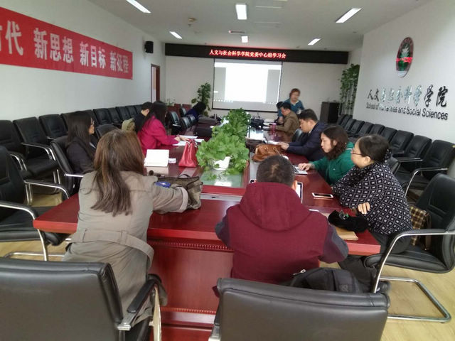 3月29日,人文與社會科學學院黨委理論學習中心組開展集體學習,學習傳達2018年全國兩會精神,貫徹落實學校有關要求,學院黨委理論學習中心組全體成員、教工黨支部書記、系所負責人參加學習。專題學習由學院黨委書記婁秀紅主持。