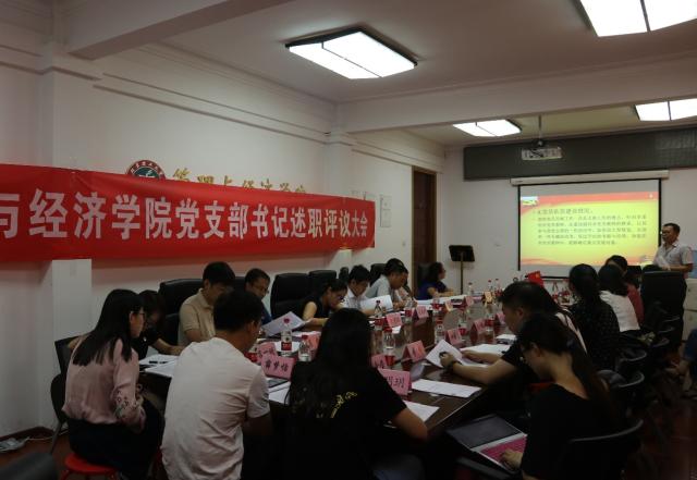 為全面貫徹落實黨的十九大、十九屆二中全會、三中全會精神、以推進“兩學一做”學習教育常態化、制度化,不斷加強領導班子建設和黨支部規范化建設,不斷提升黨支部的凝聚力和戰斗力,管理與經濟學院黨委常態化開展黨支部書記抓黨建述職評議,繼 2017年實現黨支部書記述職全覆蓋以來,2018年7月2日在主樓317會議室再次召開新一輪黨支部書記抓黨建工作現場述職。學院黨委委員、黨政聯席會成員出席會議,教師黨支部書記、學生黨支部書記參加會議,副書記、副院長彭明雪主持會議。學校黨委組織部徐碧瑢,黨建和思想政治工作專家巫后新出席會議。