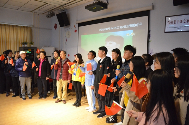 最后,學生黨員與退休老黨員們共同歌唱《我和我的祖國》,以表達對祖國的美好祝愿,祝福人民幸福安康,祖國繁榮富強,共訴愛國情懷。現場洋溢著澎湃的青春熱情。