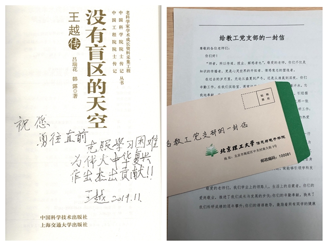 移步黨建工作室后,開啟了共建研討環(huán)節(jié)。運(yùn)用跨校區(qū)遠(yuǎn)程視頻會議系統(tǒng),實(shí)現(xiàn)了在中關(guān)村校區(qū)信息安全與對抗研究所教工黨支部、信息安全與對抗研究生第三黨支部與在良鄉(xiāng)得睿信書院本科生黨支部3個支部實(shí)時互動。活動中,黨建導(dǎo)師代表陶然、單濤,學(xué)生黨員代表周雨潺、王洋、楊傳敏、毛著章分別結(jié)合各自工作和學(xué)習(xí),圍繞“愛國奮斗”主題,交流分享感悟和心得。學(xué)生代表致信黨建導(dǎo)師表達(dá)感恩。活動中,參觀展覽環(huán)節(jié)講到的王越院士作為學(xué)院第一批黨建導(dǎo)師代表,向?qū)W生支部贈書,書上親筆提寫“祝愿勇往直前,克服學(xué)習(xí)困難,為偉大中華復(fù)興作出杰出貢獻(xiàn)!”勉勵學(xué)生愛國奮斗。