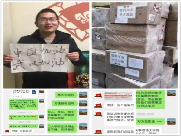 李東,家住黃岡市紅安縣,毗鄰武漢,正處于此次疫情的“重災區”。面對來勢洶洶的疫情,同其他地區一樣,紅安也出現了醫療防護物資極度匱乏的局面,各大醫院相繼向社會發出醫療物資募捐的求助。人民群眾的需求就是我們共產黨員奮斗的目標,他積極向導師馬宏賓反映了情況,馬宏賓協助聯系了海內外人士,為紅安等湖北地區募集了總價值十五萬人民幣的醫療防護物資。目前首批非洲塞內加爾華人捐贈的物資已經抵達中國,并分批次發往各個目的地,部分物資已經簽收。
