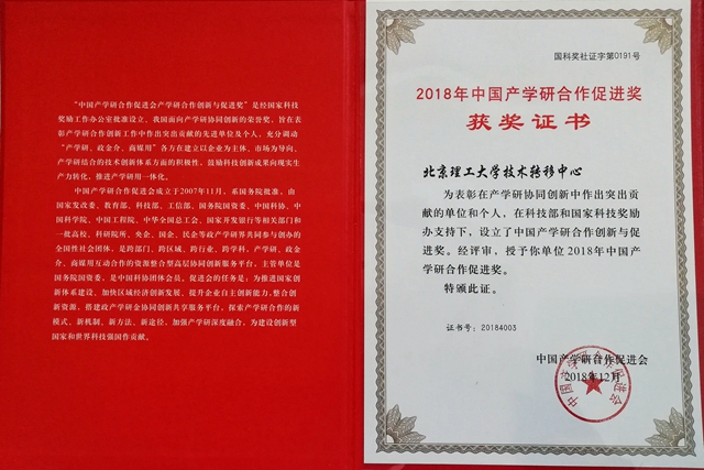 北京理工大學榮獲中國產學研合作促進獎和創新成果獎