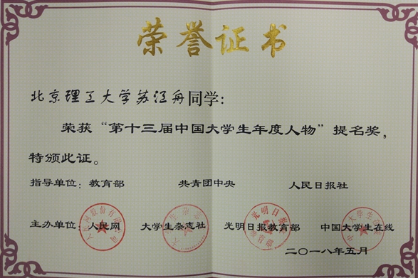 北理工學子獲“第十三屆中國大學生年度人物”提名獎