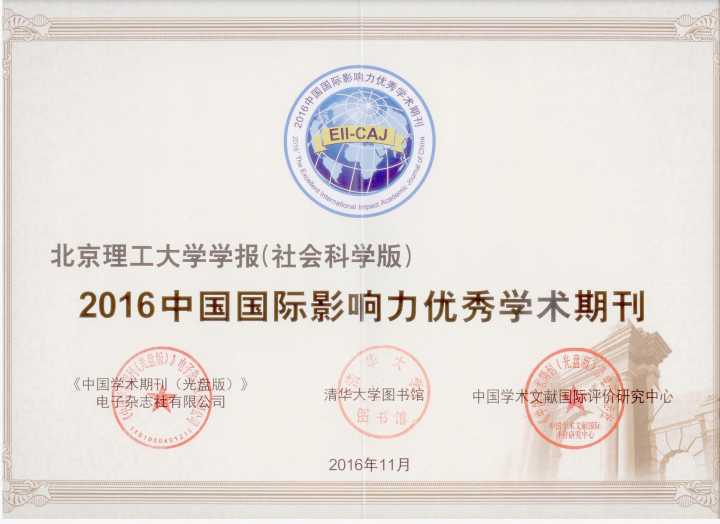 《北京理工大學(xué)學(xué)報(社會科學(xué)版)》榮獲“2016中國國際影響力優(yōu)秀期刊...