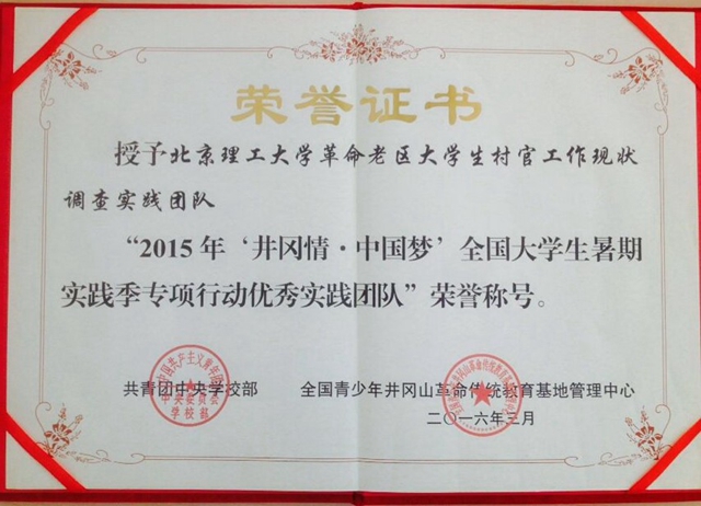 北理工實踐團榮獲2015“井岡情·中國夢”全國大學生暑期實踐季優秀課題...