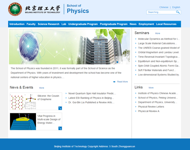 日前,物理學院英文網站正式完成建設,上線運行,這標志著北京理工大學全新模式的二級英文網站建設工作邁出標志性的一步。按照學校國際化建設發...