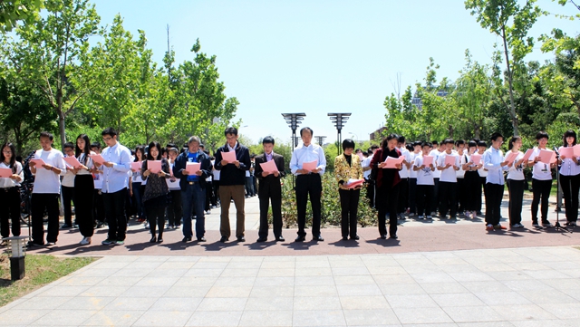 5月12日, 基礎教育學院“品醞書香 悅讀天下”讀書月啟動儀式在良鄉校區北湖隆重舉行。校長助理、基礎教育學院黨委書記姚利民、基礎教育學院常務副院長張青山、良鄉校區管理處副處長霍俊斌、學生工作處副處長許欣、校團委宣傳部部長艾翔、基礎教育學院副院長朱光輝、基礎教育學院副院長程杞元、校團委副書記兼基礎教育學院團委書記陸寶萍、基礎教育學院各團總支書記及全體專職團干部參加了啟動儀式,啟動儀式由基礎教育學院團委劉歡主持。