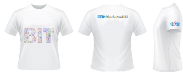 自3月29日起面向全體畢業生征集畢業紀念衫設計方案。經過網絡投票和評審評分,最終“最后的紀念”作品脫穎而出,作品中BIT三個字母由總共72個元素拼成,所有的元素均來自信息與電子學院同學們大學四年所學的課程,這些公式、符號組成了信息學子在BIT的點點滴滴。