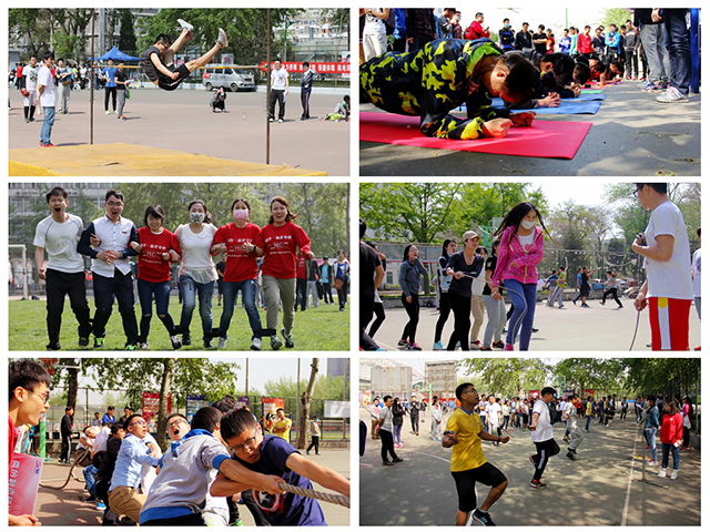 本屆運動會分為田賽、徑賽、趣味賽三大類,項目豐富、規則嚴謹,為同學們提供了一個全面的運動交流、展示自我的平臺。各運動員在比賽中都展現出了最好競技狀態,在比賽場上奮勇爭先,詮釋著“更高、更快、更強”的奧林匹克精神。學生的趣味比賽運動會在南籃球場舉行,比賽項目包括跳繩、踢毽、平板支撐、集體跳繩、六人七足、拔河和集體投籃。同學們參加踴躍,積極熱情,充分展示了我院學生全面發展的優良素質,也體現了各集體的團隊協作精神。在北籃球場上,也不時傳來加油聲,平日課堂上兢兢業業的老師們此刻盡情地揮灑比賽的熱情,拔河、投籃、集體跳繩樣樣精通,學院工會還為老師們準備了滾鐵環、跳跳圈等傳統趣味項目,同學們在場邊高呼喝彩,展現了學院老師和同學們親密無間的師生情誼。