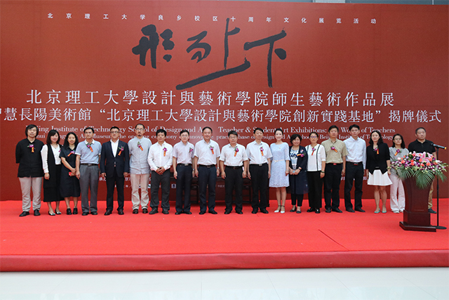 2017年9月16日下午,由北京理工大學主辦的“北京理工大學良鄉校區十周年文化展覽活動:形而上下——北京理工大學設計與藝術學院師生藝術作品展”暨智慧長陽美術館“北京理工大學設計與藝術學院創新實踐基地”揭牌儀式于北京智慧長陽美術館舉行。北京市房山區副區長齊文東、北京理工大學副校長王曉鋒、良鄉高教園區管委會黨組書記、常務副主任路鵬、房山區文化委員會黨組書記、主任冀顯江、房山區長陽鎮鎮長劉文靜、北京理工大學設計與藝術學院院長楊建明、設計與藝術學院黨委書記郭宏、北京理工大學良鄉校區管理處處長朱光輝、智慧長陽文化產業基地董事長楊昆、智慧長陽美術館館長楊慧、河北省美術家協會主席 祁海峰、北京航空航天大學人文與社科高等研究院院長、北航藝術館館長蔡勁松、首都師范大學美術學院副院長孫滌、河北師范大學美術與設計學院教授祁鳳霞、山東省山水畫藝委會委員、煙臺畫院畫家王大力、江蘇無錫市青年美協副主席、無錫市書畫院畫家郭瑞卿、中央數字電視書畫頻道教學部主任張釗、北京理工大學 設計與藝術學院副院長王東聲、設計與藝術學院副院長姬勇等領導嘉賓出席了開幕式和揭幕儀式。北京理工大學設計與藝術學院副書記、副院長孫飛主持了開幕式。