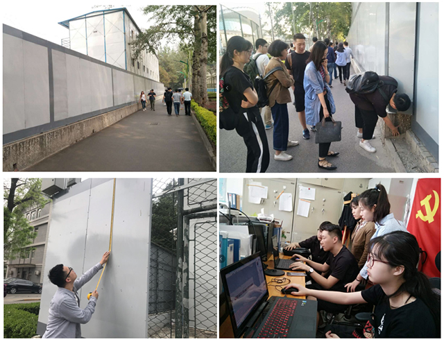 6月20日,北理工設計與藝術學院的師生在畢業季為母校獻上了一份特殊的禮物,他們讓中關村校區新校醫院工地一百余米的灰白彩鋼圍擋搖身變成漂亮的校園文化墻,在校園中展示北京理工大學的往昔崢嶸歲月和現在的美麗校園。