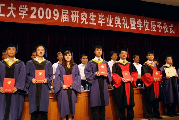 上午九時整,在研究生院常務副院長薛唯主持下,2009屆研究生畢業典禮暨學位授予儀式在莊嚴的國歌聲中拉開序幕。副校長、研究生院院長孫逢春宣布準予畢業研究生名單和學位授予決定。副校長趙顯利宣布優秀畢業研究生表彰決定及名單。到會領導為優秀畢業生代表頒發優秀畢業研究生證書。