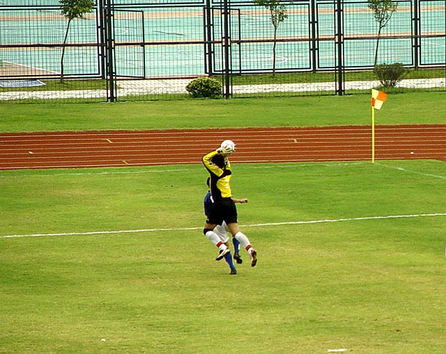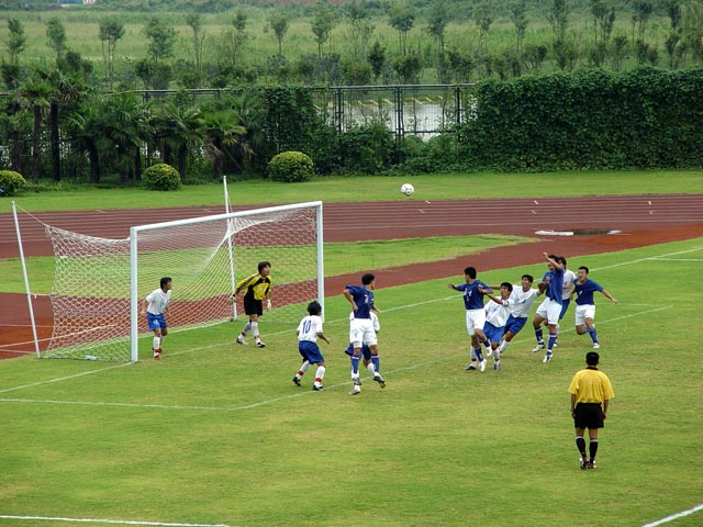 直到上半場的補時階段,我方利用一次角球機會敲開了對方的大門。