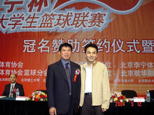 2004年5月12日下午,人民大學(xué)逸夫館,在由北京市體育協(xié)會(huì)和北京大學(xué)生籃球協(xié)會(huì)聯(lián)合主辦、由李寧公司贊助的第八屆北京大學(xué)生籃球聯(lián)賽的新聞發(fā)布會(huì)上,來(lái)自首都11所高校的領(lǐng)導(dǎo)以聯(lián)名籃球的形式宣布新一輪較量開(kāi)始,大學(xué)生運(yùn)動(dòng)員代表更是喊出了“圓夢(mèng)2008,一切皆有可能!”的高校籃球宣言。