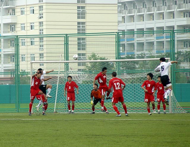 經過六天的激烈比賽依然充滿信心的我校足球隊今天在半決賽迎戰河北大學生足球隊。