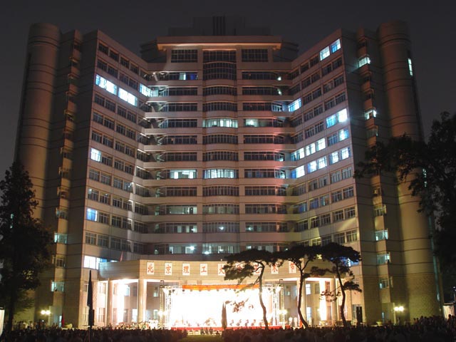 夜色中的中心教學樓被恢宏的音樂所環繞。