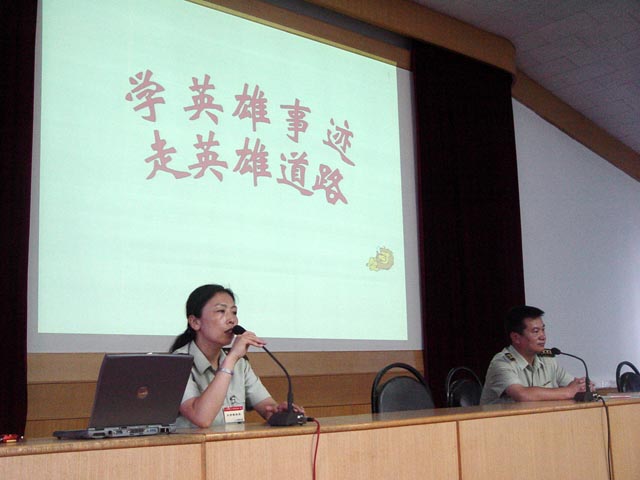 炮兵指揮學(xué)院軍訓(xùn)旅政委藺承做了“學(xué)英雄事跡,走英雄道路”的精彩報告