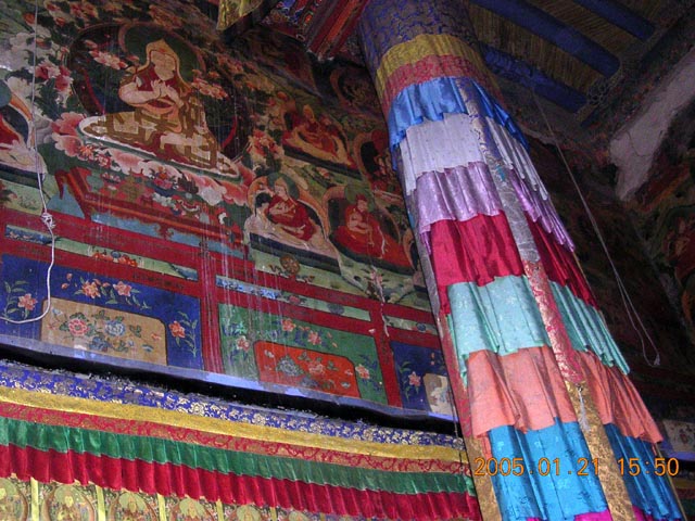 達瓦:這些壁畫已經存在七、八百年了,建這個寺院時候就有這些壁畫,這是這個寺院的第一間房子,一建就有這些壁畫,這些壁畫沒有修改,都是最古老的。