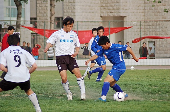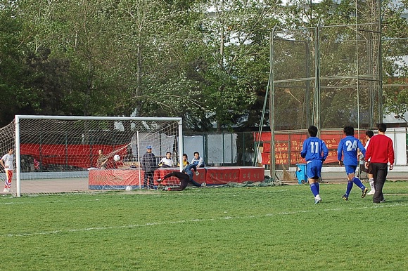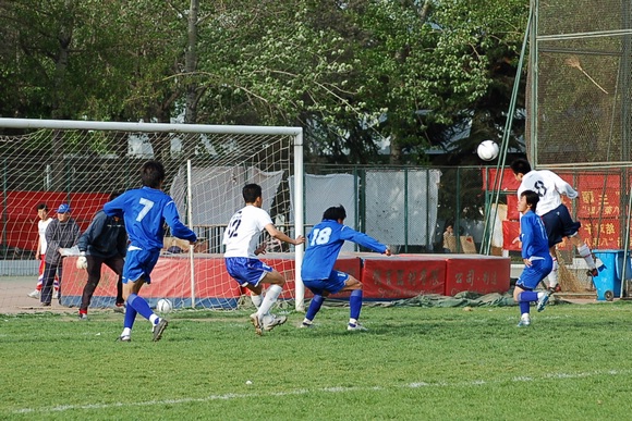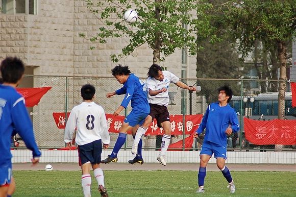 4月24日下午,為迎接即將開戰的全國足球乙級聯賽,我校足球隊(白衣)與安徽九方足球隊(藍衣)進行了一次熱身賽。我校足球隊作為飛利普全國大學生足球聯賽的三聯冠,今年5月開始將首次參加全國足球乙級聯賽,這也是中國足球聯賽中第一支完全由在校大學生組成的球隊。而安徽九方足球隊是去年全國乙級聯賽的第四名,雙方球隊實力非常接近,雖然這兩只隊伍在第一階段比賽中分屬南北兩個大組,但比賽還是吸引了眾多師生員工前去觀戰。