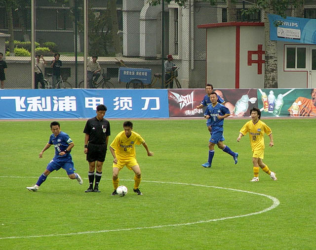 6月5日上午九點(diǎn),04-05飛利浦全國大學(xué)生足球聯(lián)賽總決賽的首場比賽在中國人民大學(xué)足球場拉開戰(zhàn)幕。本場比賽的交戰(zhàn)雙方是東道主中國人民大學(xué)和衛(wèi)冕冠軍北京理工大學(xué)。就兩隊(duì)實(shí)力對比來說,北京理工要強(qiáng)一些,但中國人民大學(xué)曾經(jīng)在去年的北京高校杯上兩勝北理,又占有主場之利,所以也并非沒有勝出的機(jī)會(huì)。但今天勝利的天平最終還是向北理傾斜了,經(jīng)過90分鐘的激烈爭奪,北京理工大學(xué)技高一籌,2:1小勝中國人民大學(xué)。