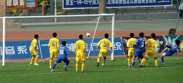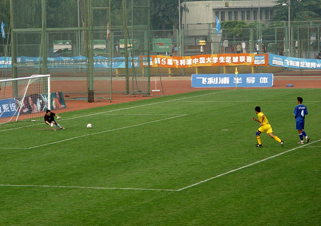 在去年上海大運(yùn)會(huì)足球賽場(chǎng)上,我校足球隊(duì)曾與東華大學(xué)隊(duì)兩次交手,首場(chǎng)比賽和冠亞軍爭(zhēng)奪賽均打成了0:0,只是在決賽的加時(shí)賽后點(diǎn)球決勝時(shí)以微弱優(yōu)勢(shì)負(fù)于對(duì)手,屈居亞軍。