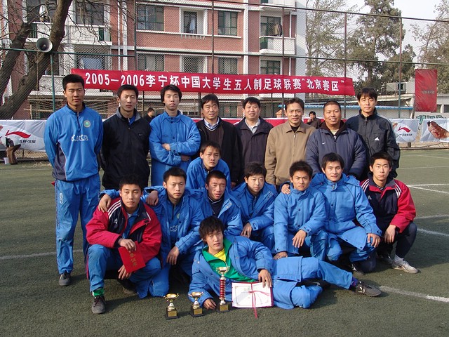 3月26日下午,在中國人民大學體育場進行了“2005-2006李寧杯中國大學生五人制足球聯賽”北京賽區的決賽,我校足球隊頑強拼搏,不畏強敵,以1:0戰勝清華大學隊,奪得北京賽區冠軍。