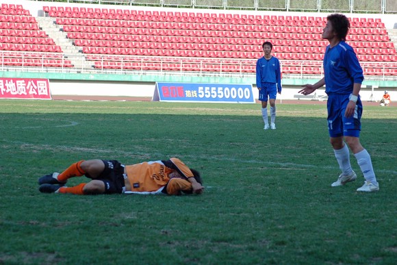 哈藥毅騰隊(duì)上半場以0:2落后,下半場踢法較為粗野。