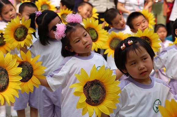 中班小朋友也為大家表演了體操“葵花娃娃”,葵花朵朵就像孩子們張張可愛的笑臉。