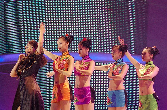 要說(shuō)到將音樂(lè)和體育完美結(jié)合,就一定要數(shù)臺(tái)灣小天后蔡依林的最新單曲《舞娘》。繼MTV亞洲大獎(jiǎng)上首次公開(kāi)“舞娘”功力,“志愿北京”演唱會(huì)是蔡依林首次在國(guó)內(nèi)的舞臺(tái)上表演。彩帶上下紛飛,舞球左右滾動(dòng),這段高難度的融合藝術(shù)體操元素的舞蹈,將體育的力量與舞蹈的柔美完美結(jié)合,盡顯新晉亞洲小天后的風(fēng)采。