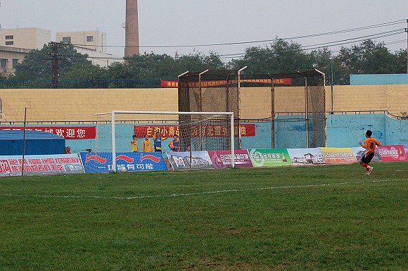 剛剛換上場的29號年輕球員秦陽在門前候個正著,抬腳勾射將比分鎖定了3-0的比分。