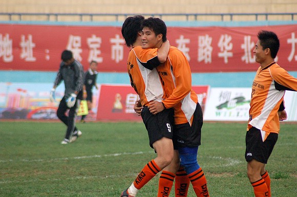 我校師生中的部分鐵桿球迷也遠赴保定進行現(xiàn)場助威。