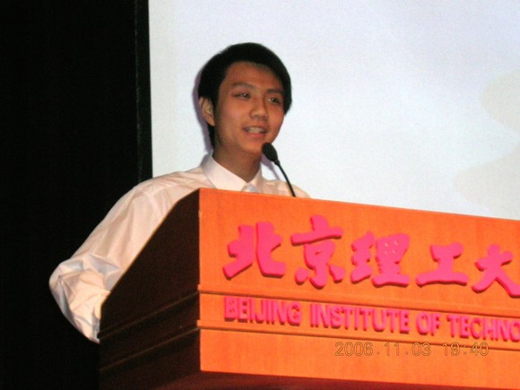經(jīng)過(guò)10月28日“暢想2008奧運(yùn)主題演講比賽” 預(yù)賽的激烈角逐,最終選出了12名選手參加11月3日在中教報(bào)告廳舉行的決賽。伴隨著我校足球隊(duì)沖甲成功的喜訊,參賽選手們以飽滿的熱情表達(dá)了對(duì)2008北京奧運(yùn)會(huì)的向往!