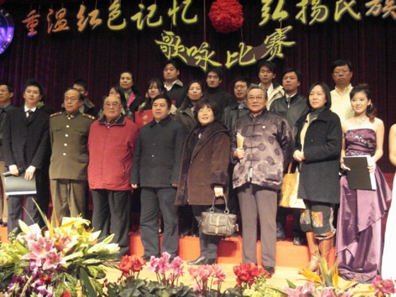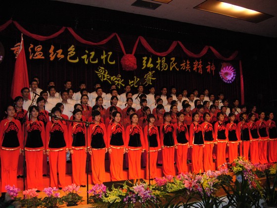 我院的參賽曲目是長征組歌的第一首《告別》以及一首精心挑選的經(jīng)典革命歌曲《紅軍鞋》,當晚,06級管理與經(jīng)濟學(xué)院新生以他們動情的演唱博得了在場觀眾一陣又一陣的掌聲,歡呼聲、掌聲連成一片,在中教報告廳回響,久久不能散去……在經(jīng)過了接連13個學(xué)院的精彩演唱后,在評委們一番嚴密的商討以及謹慎的評分后,我院以絕對優(yōu)勢取得了比賽的冠軍,在時隔一年之后,終于如愿重新回到了冠軍的領(lǐng)獎臺上。主持人一一宣讀了各個學(xué)院的所獲獎項,并由校領(lǐng)導(dǎo)、評為代表一一為獲獎單位頒發(fā)獎項,最后校領(lǐng)導(dǎo)與我院各級領(lǐng)導(dǎo)和參賽同學(xué)、學(xué)生干部合影留念……