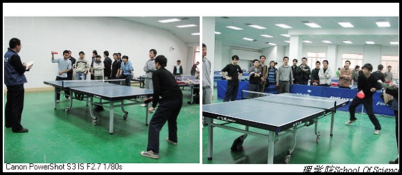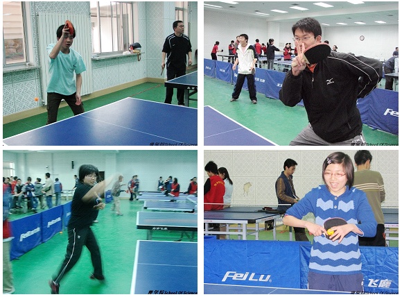 2007年3月31日上午八點,理學(xué)院首屆乒乓球比賽在校體育館乒乓球館拉開了帷幕。本著強身健體,豐富學(xué)生課余文化生活,同時也為將要在全校舉辦的乒乓球聯(lián)賽選拔人才做準備的目的,本次乒乓球賽博得了理學(xué)院同學(xué)的積極響應(yīng),比賽現(xiàn)場氣氛異常熱烈。